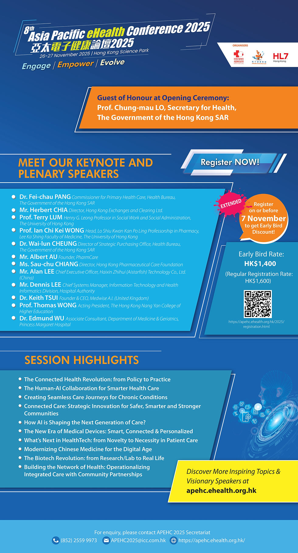 Asia Pacific eHealth Conference 2025 We sincerely invite you to participate in the Asia Pacific eHealth Conference 2025...